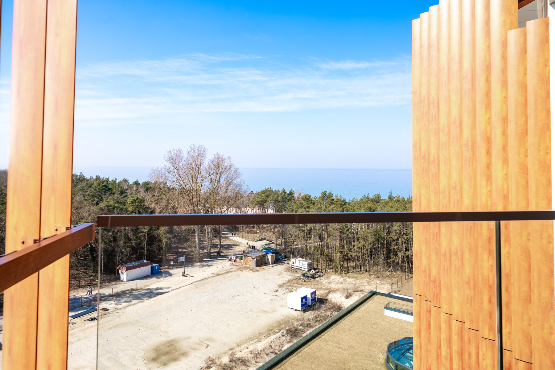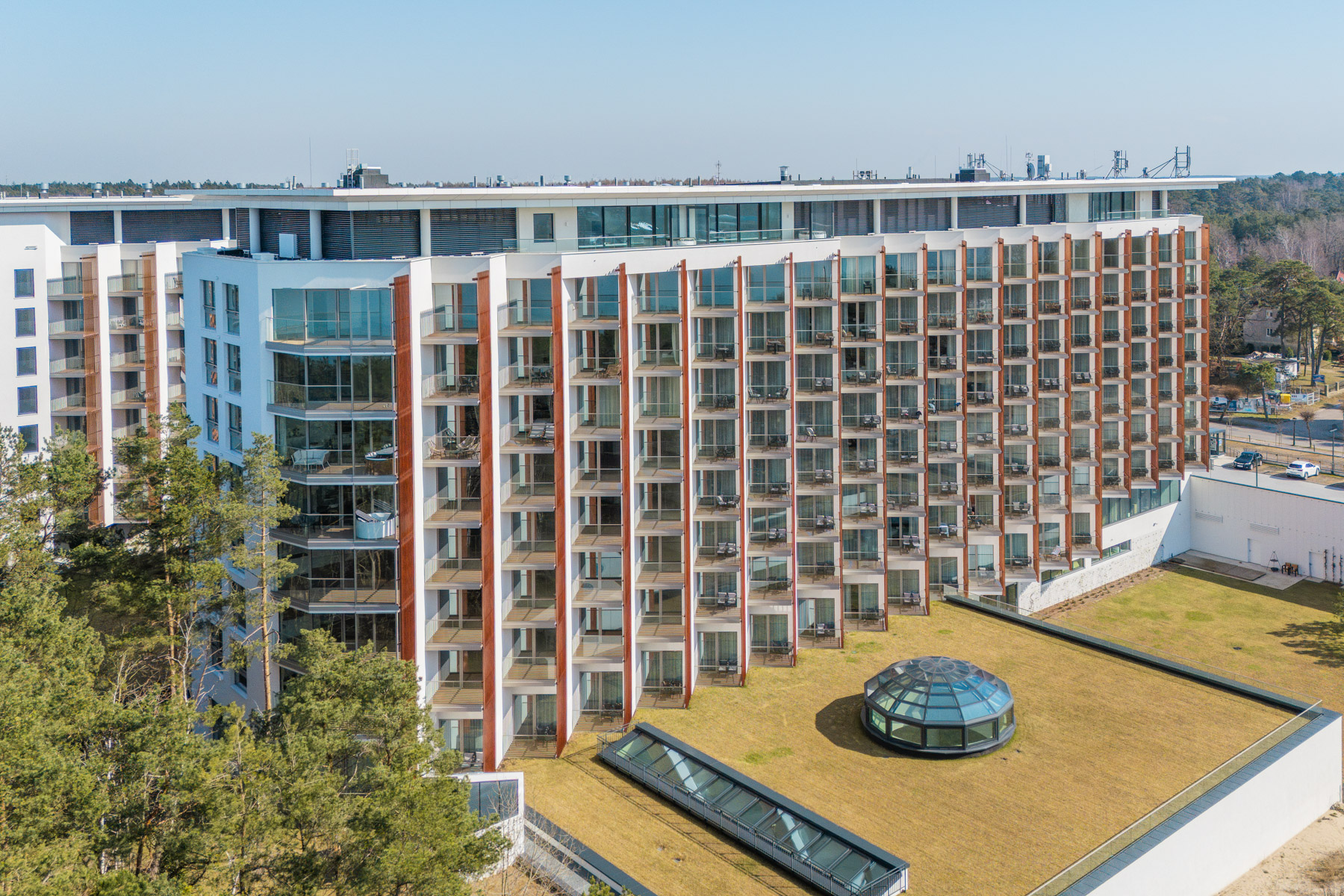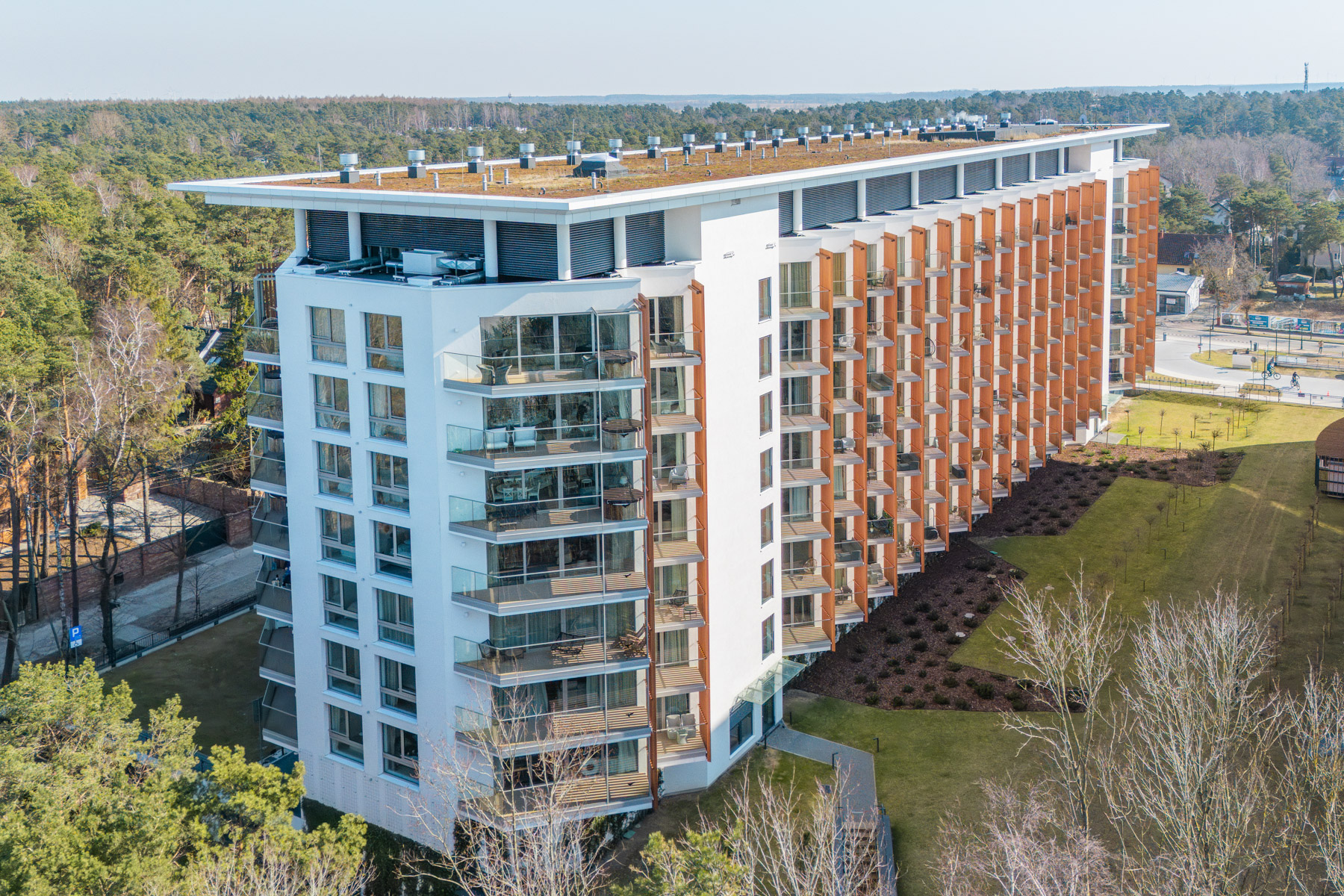 Apartamenty wyróżniają się nowoczesnym designem, przestronnością oraz wysokim standardem wykończenia. Każdy z nich wyposażony jest w aneks kuchenny, komfortową łazienkę, klimatyzację oraz balkon – często z widokiem na morze lub sosnowy las.