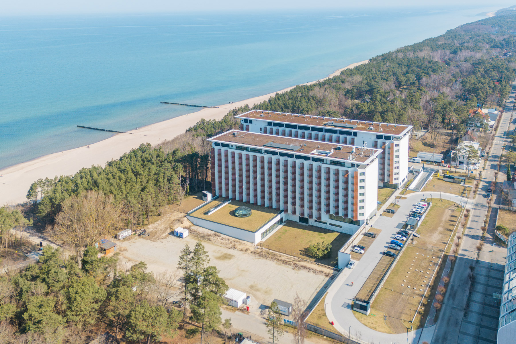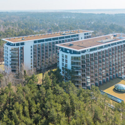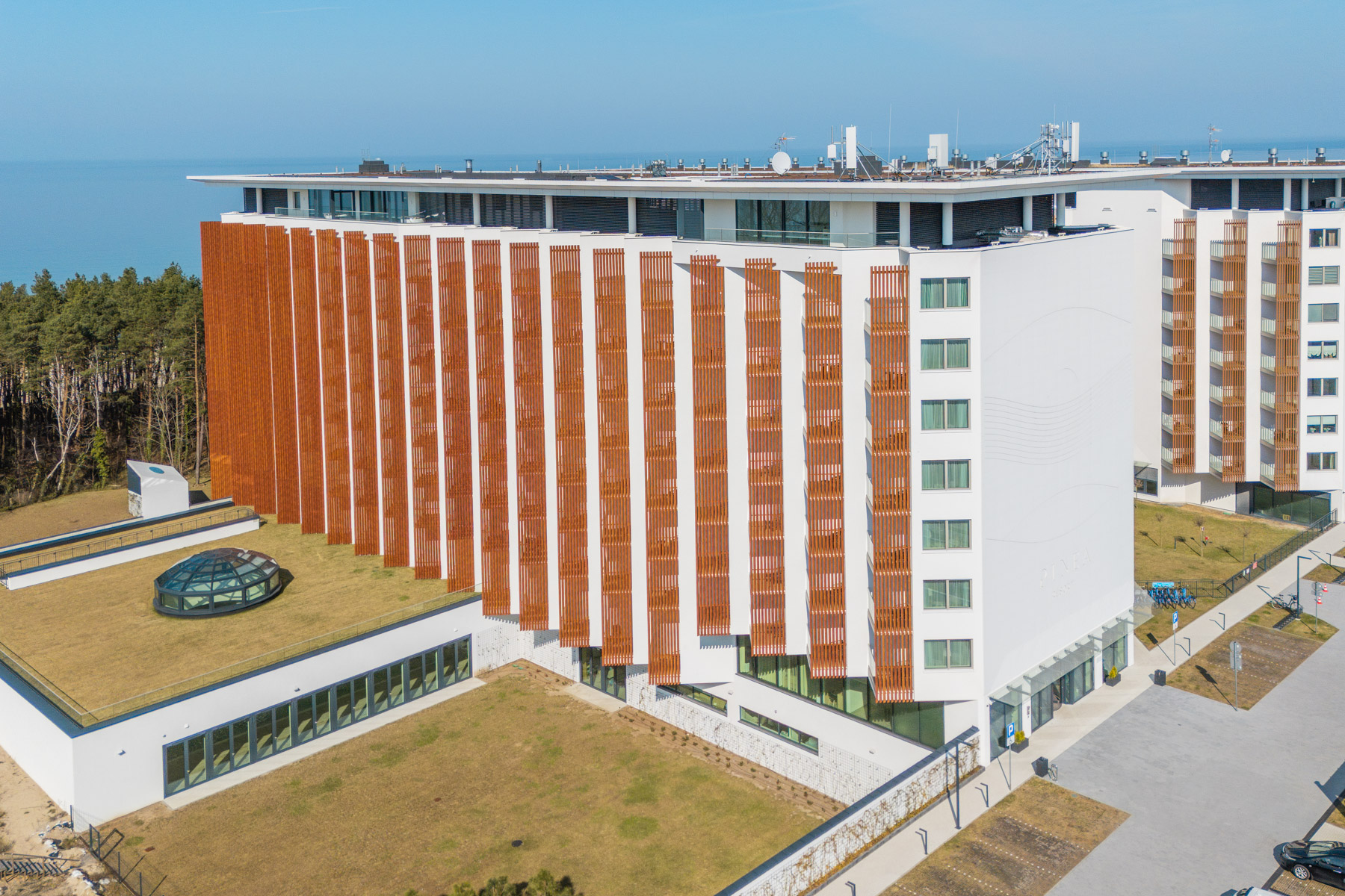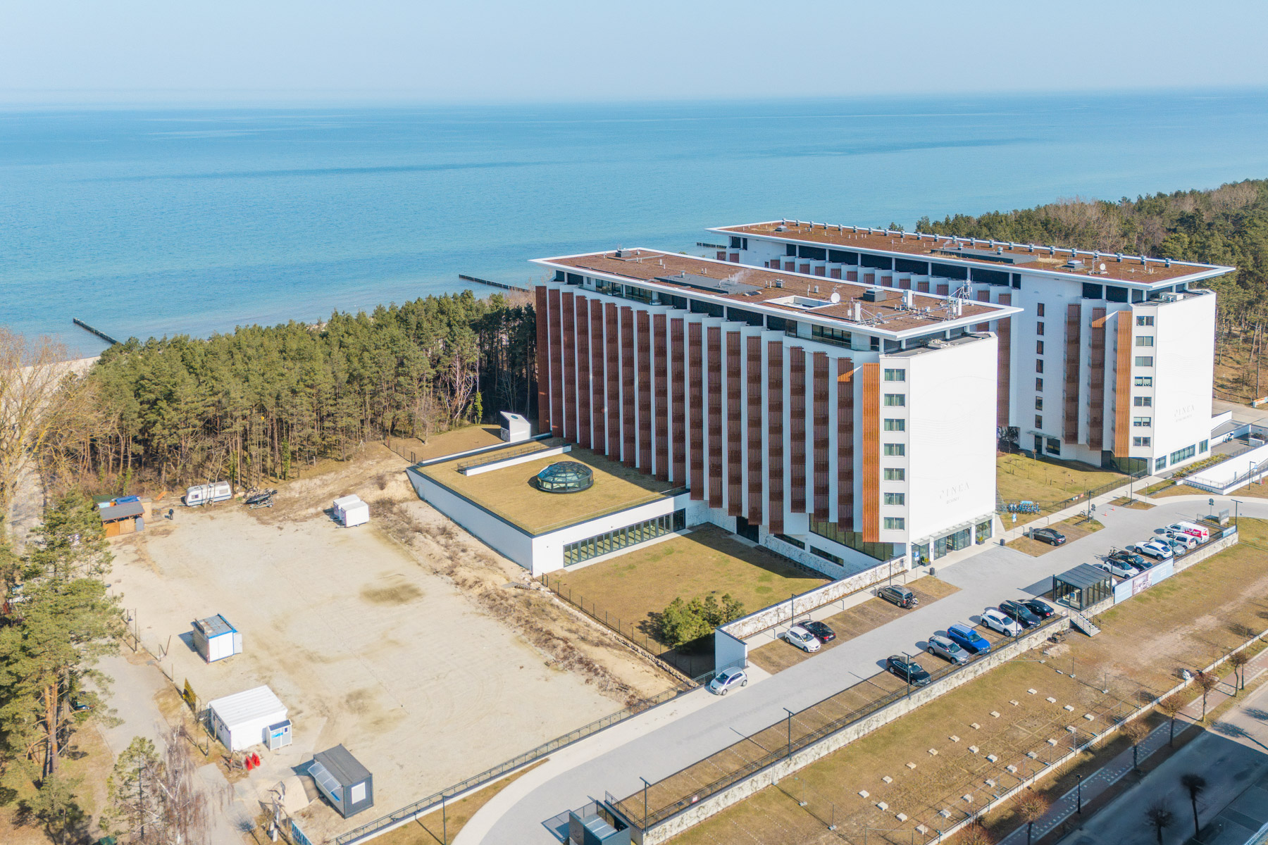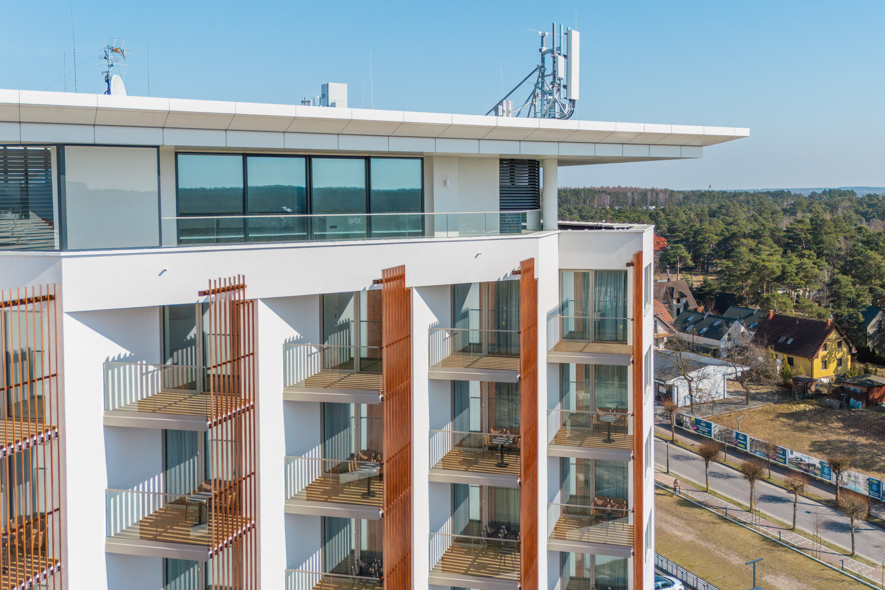 Apartamenty wyróżniają się nowoczesnym designem, przestronnością oraz wysokim standardem wykończenia. Każdy z nich wyposażony jest w aneks kuchenny, komfortową łazienkę, klimatyzację oraz balkon – często z widokiem na morze lub sosnowy las.