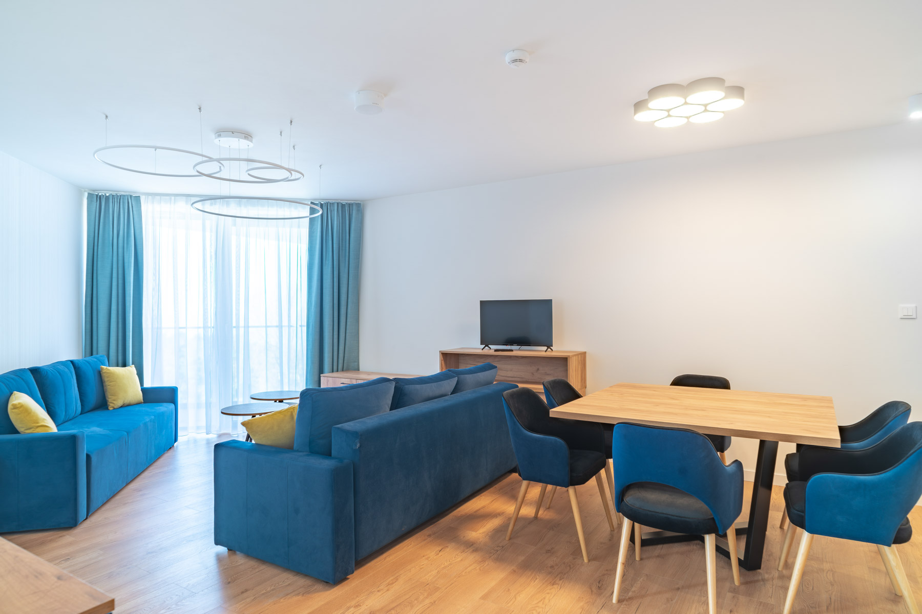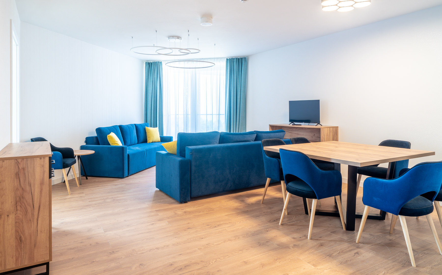 Nowoczesne, klimatyzowane apartamenty oferują wszystko, czego potrzeba do komfortowego pobytu – przestronne wnętrza z prywatnym balkonem, aneksem kuchennym, stylową łazienką. Każdy apartament został zaprojektowany z dbałością o detale i funkcjonalność, dzięki czemu goście mogą cieszyć się pełną swobodą i domową atmosferą.